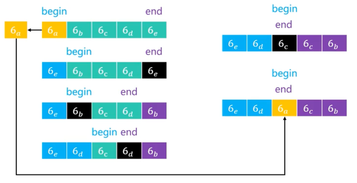 // 将 end 位置的元素移动到 begin 位置
