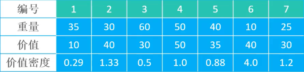 6, 7, 2, 1, 5,总重量140, 总价值155。 - 单位重量价值主导:放入背包的物品编号