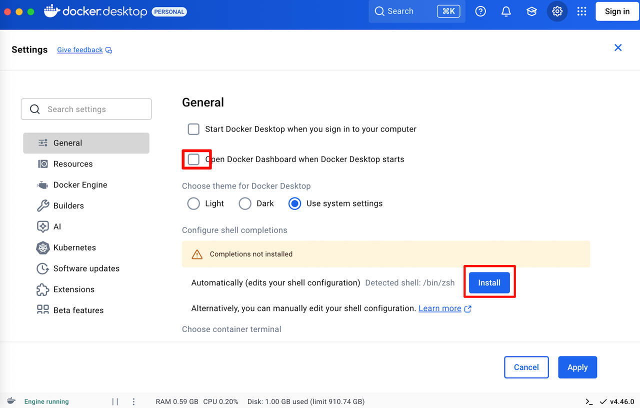 关闭当 Docker Desktop 启动时自动打开 Dashboard: