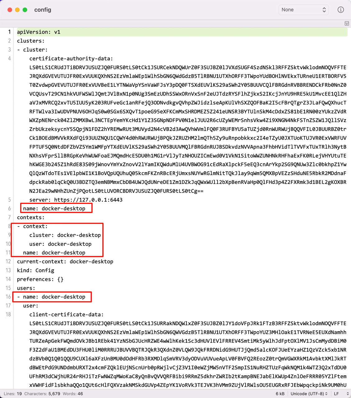 ~/.kube/config文件,查看 Kubernetes 集群的配置信息: