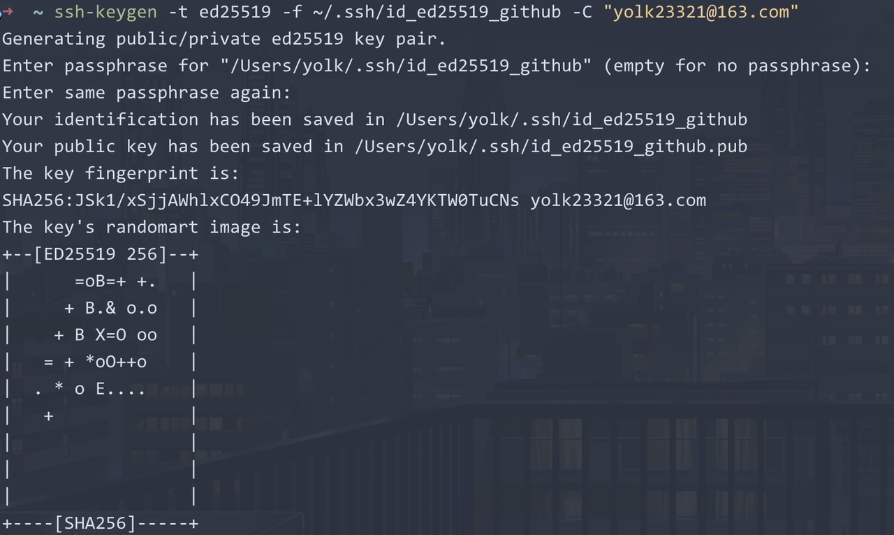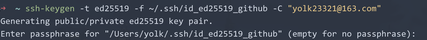 ssh-keygen -t ed25519 -f ~/.ssh/id_ed25519_github -C "yolk23321@163.com"