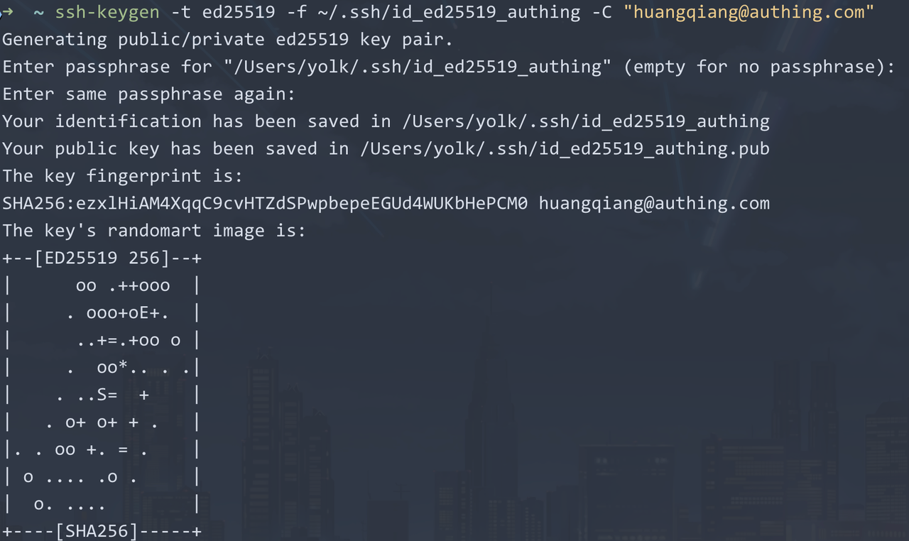 ssh-keygen -t ed25519 -f ~/.ssh/id_ed25519_authing -C "huangqiang@authing.com"