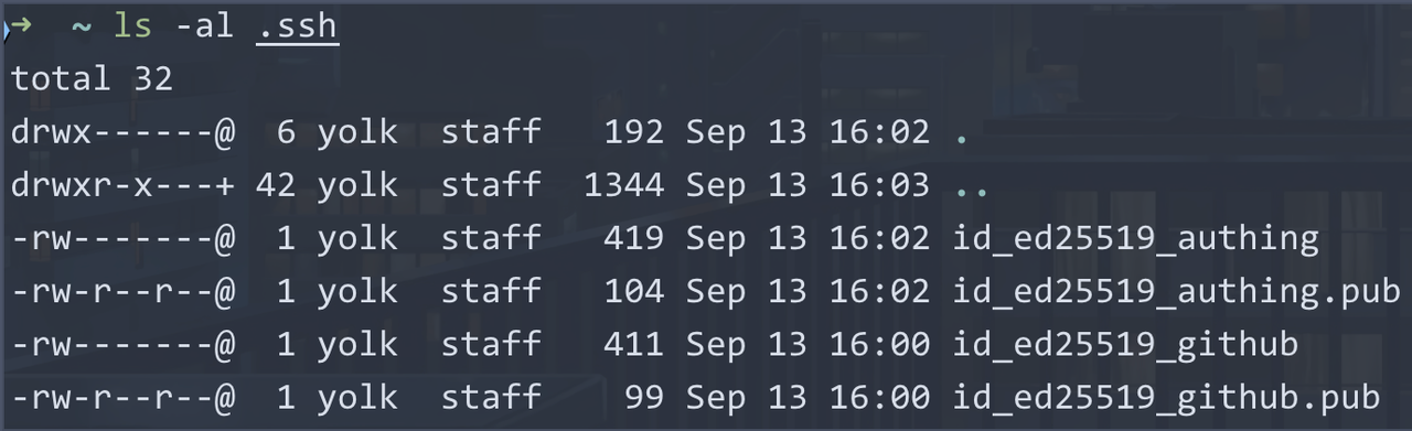 查看~/.ssh/目录下生成的密钥文件(4 个文件):