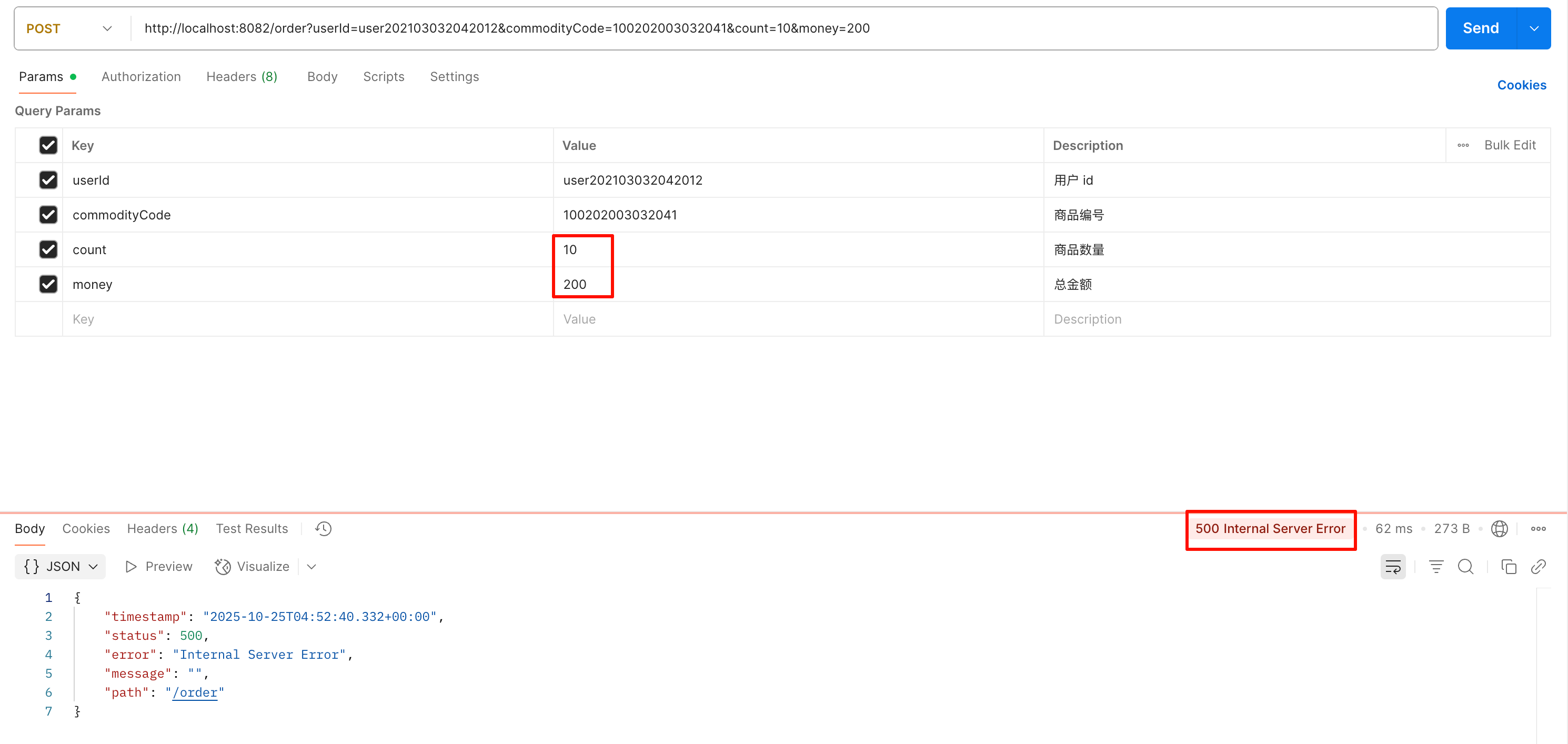 bashcurl -X POST "http://localhost:8082/order?userId=user202103032042012&commodityCode=100202003032041&count=2&money=200"