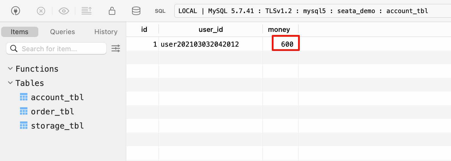 查询数据库,发现订单创建成功,余额和库存也扣减成功。