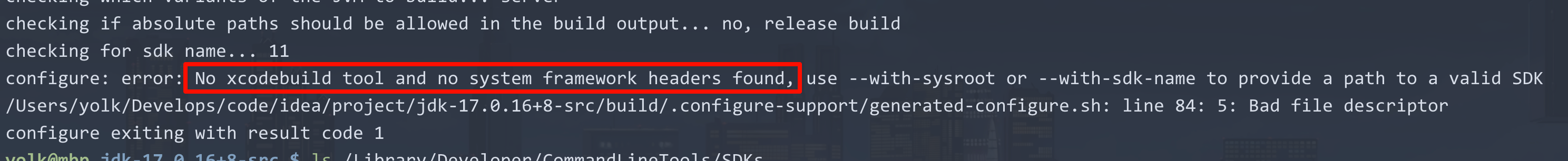 这是因为 JDK 内部的 Java 2D、OpenGL、Metal Pipeline 需要链接一些 Metal 头文件或工具,这里我们直接跳过,顺便加上--disable-warnings-as-errors参数,表示禁止把警告当作错误:
