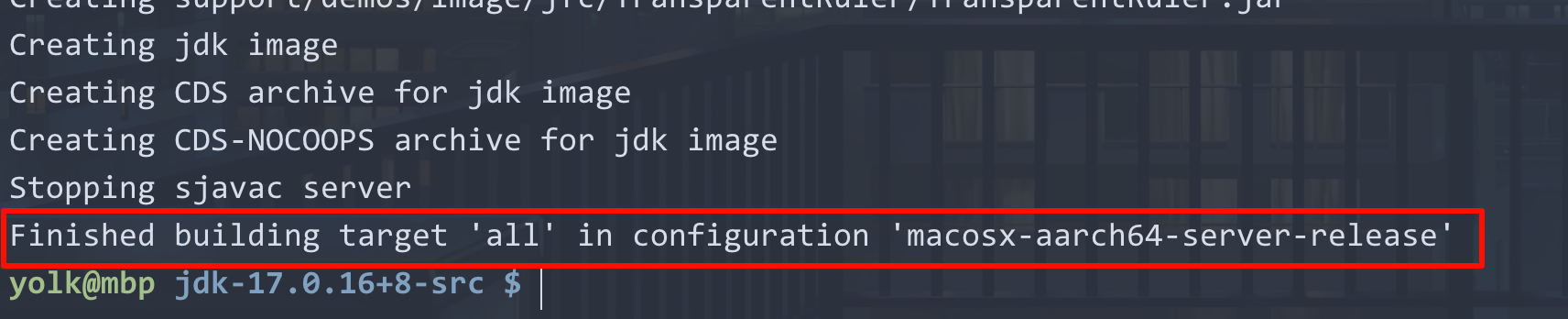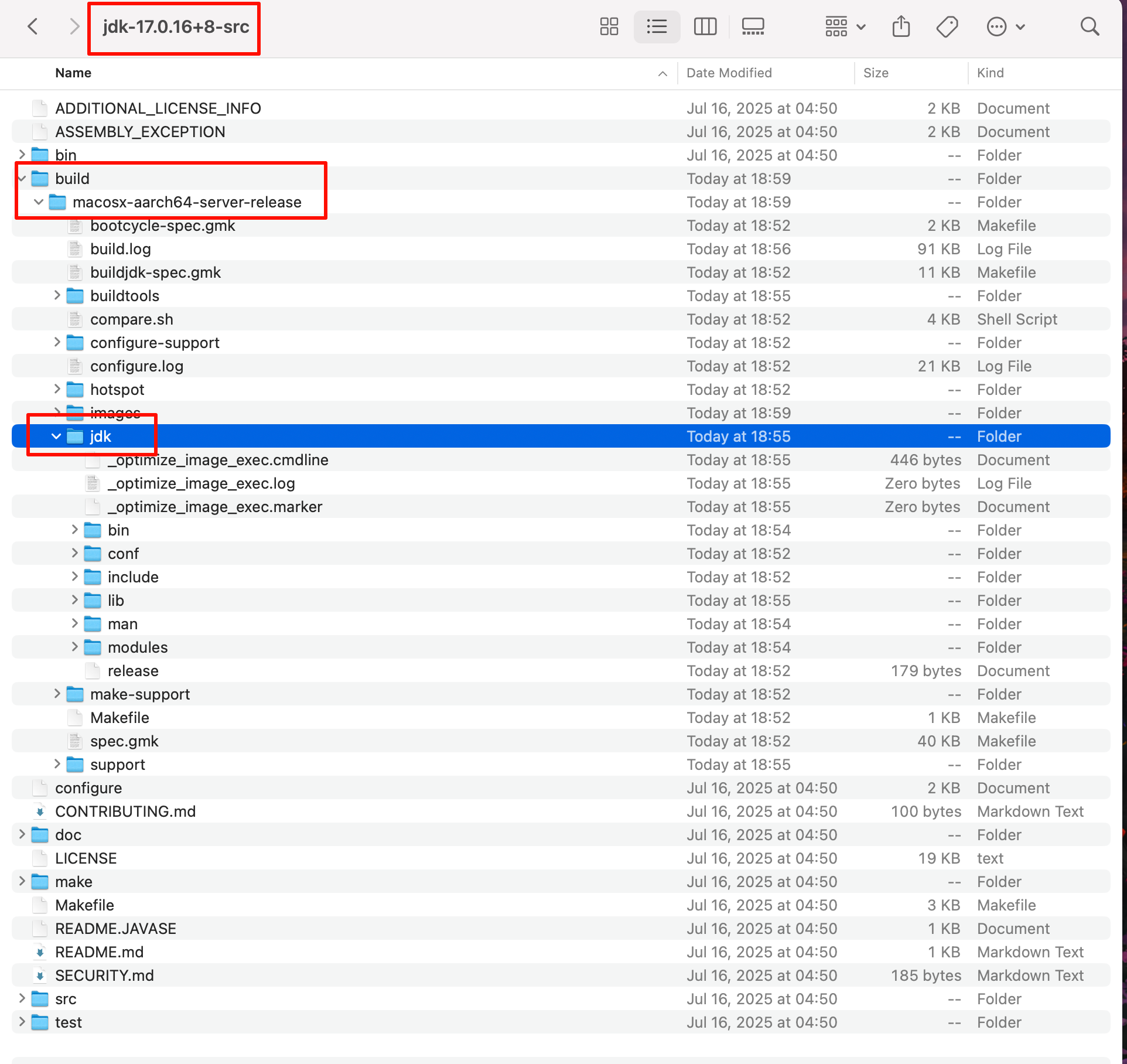 编译后的 JDK 会生成在build/macosx-x64-server-release/jdk目录下: